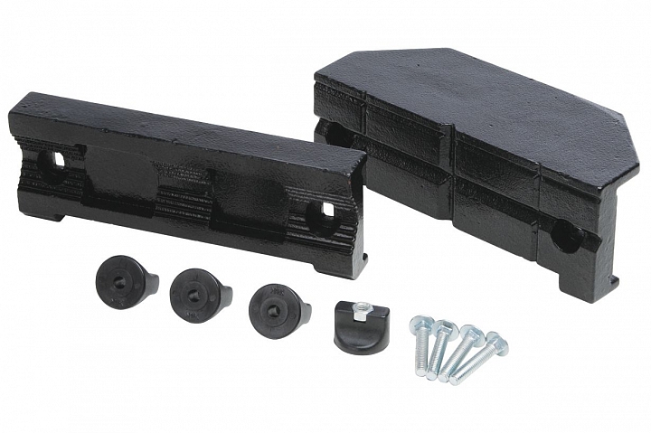 SJAEJ Слесарные губки из высокопрочного чугуна для работ с металлом. Крепятся на болтах, одна из губок с расширением-наковальней, изготовлены из высокопрочного чугуна. Специальная форма с трубным захватом для деталей с округлым сечением диаметром до 50 мм.