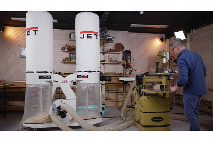 Jet DC-1900A — высокопроизводительная вытяжная установка со сдвоенными фильтрами и накопителями, поставляется с трёхфазным двигателем большой мощности. Разветвитель аспирационного патрубка позволяет подключать при помощи 100-миллиметровых рукавов до трёх точек пылесбора или, если требуется, один единственный рукав диаметром 150 или 200 мм. «Улитка» и крыльчатка выполнены из стали и не боятся повреждений сучками или щепой, которые попадаются в отходах деревообработки.