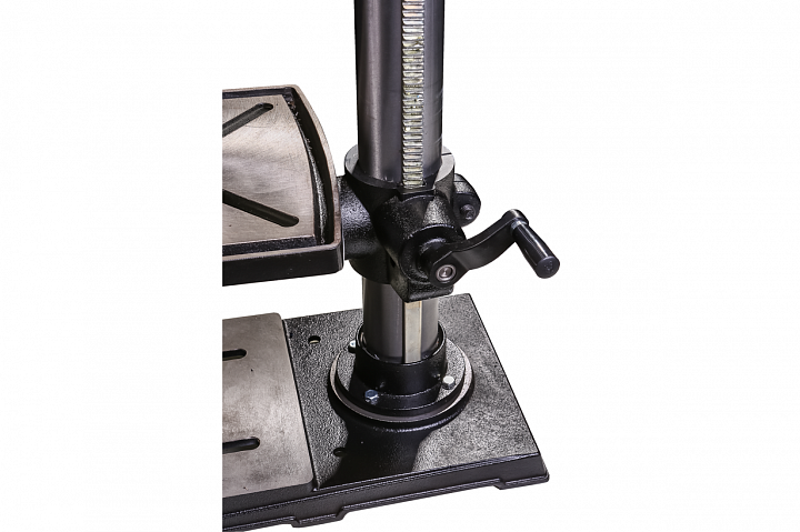 Основание, стол и голова станка отлиты из серого чугуна. Голова установлена на толстостенную трубу, что эффективно гасит вибрации. Стол имеет возможность поворота в обе стороны на 45 градусов, а также возможность подъема и опускания. Стол вращается по часовой и против часовой стрелки вокруг колонны. Так, например, максимальное расстояние от шпинделя до стола составляет 470 мм. Станок подключается к обычной бытовой сети 220В, устанавливается на верстак или подстолье, предусмотрена возможность крепления через основание. На станок распространяется фирменная гарантия JET. В комплект поставки входит дорн, сверлильный патрон от 1 до 13 мм, руководство по эксплуатации на русском языке.