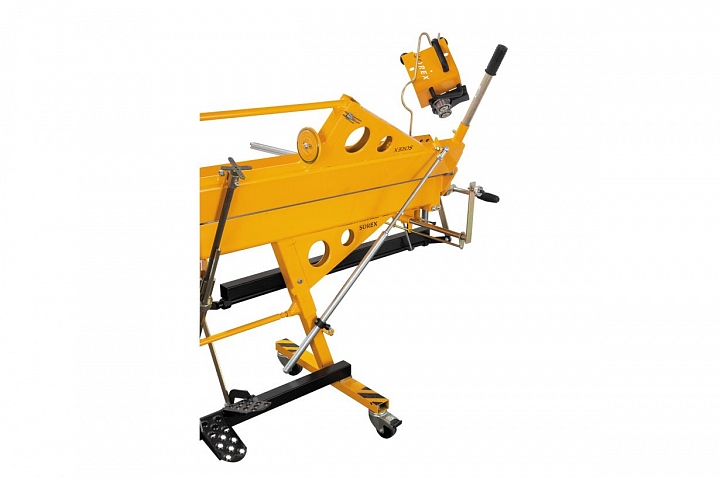 Задают фиксированный размер подачи листа из листогиба с фронтальной части станка для последующей резки роликовым ножом.