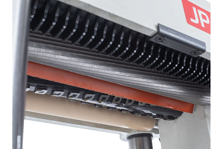 JWP-15K HH — профессиональный рейсмусовый станок со строгальным валом helical, имеющий прочную и массивную конструкцию. Подходит для интенсивной эксплуатации, для частой работы с твердыми и свилеватыми породами, обеспечивает высокое качество строгания, характерное для станков с технологией helical. Твердосплавные лезвия с радиусной кромкой расположены в несколько спиральных рядов и заходят в породу последовательно, а не по всей ширине сразу. Благодаря этому снижаются вибрации, шум, образуется менее крупная и более плотная стружка, отсутствует дефект поверхности в виде «стиральной доски». Обслуживание такого барабана проще: изношенные сегменты переворачивают (у них по четыре режущих кромки) или меняют, но не все сразу, а по мере необходимости. Никакой настройки после этого не требуется. Доступ к узлу максимально удобен за счет нижнего (в тумбе) расположения двигателя.