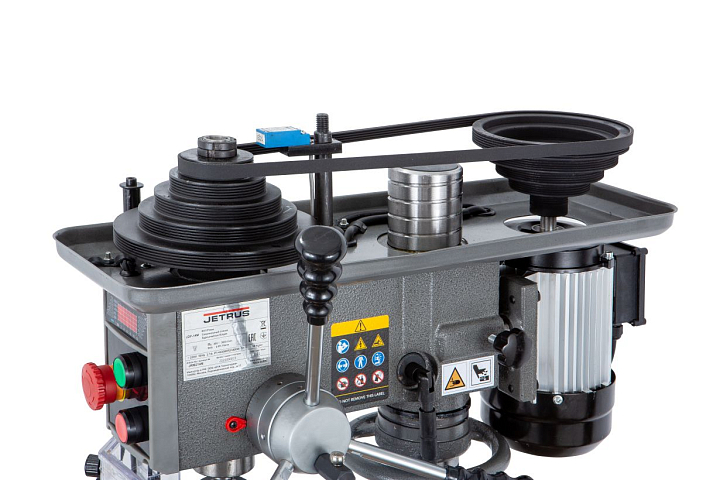 Вращающий момент с двигателя на вал шпинделя передается с помощью многоручьевого приводного ремня через шкивную группу. Диапазон частоты вращения шпинделя осуществляется в пределах от 300 до 3500 об/мин и имеет 5 скоростей.
