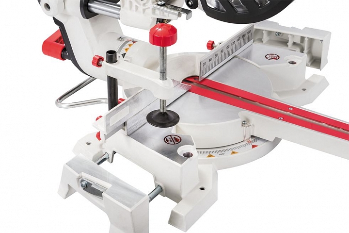 Точность в работе и простота настройки обеспечиваются высокой жесткостью конструкции, все основные части которой (рабочий стол, маятниковый рычаг, шарнирный узел) отлиты из алюминиевого сплава. Модель оборудована встроенными раздвижными расширениями рабочего стола, они выполнены из алюминиевого литья и снабжены откидными концевыми упорами.